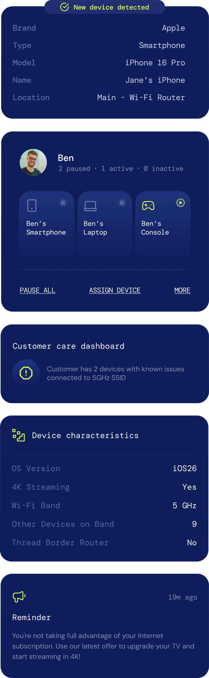 Eases device onboarding and user guidance with crucial contextual information. Network operators use device intelligence data to offer superior self-service, troubleshooting, and customer care.